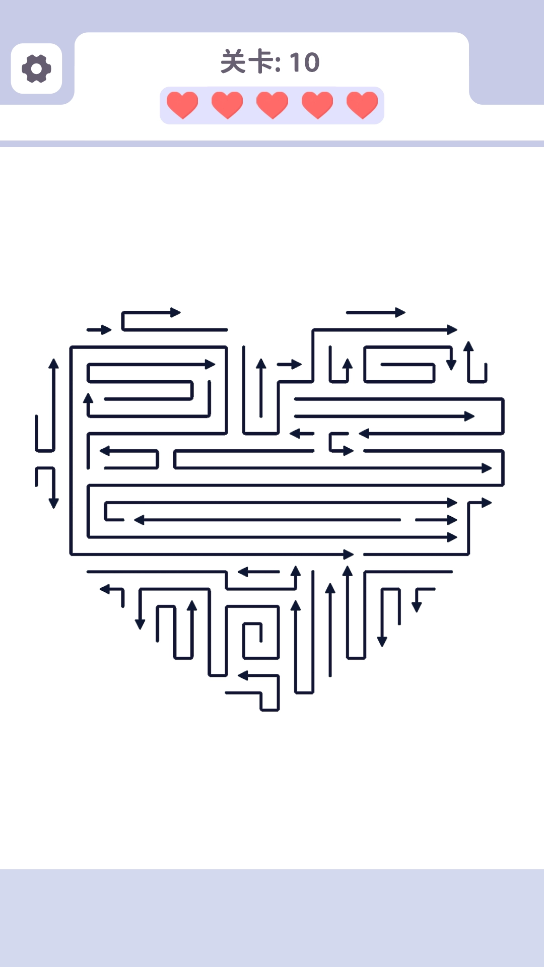 在第2关的迷宫里,按照“双击缩放”的提示来操作:当碰到复杂的路径时,双击屏幕就能放大局部区域,这样可以更清楚地看到箭头的走向以及路径之间的衔接情况,从而避免对移动方向做出错误的判断。
