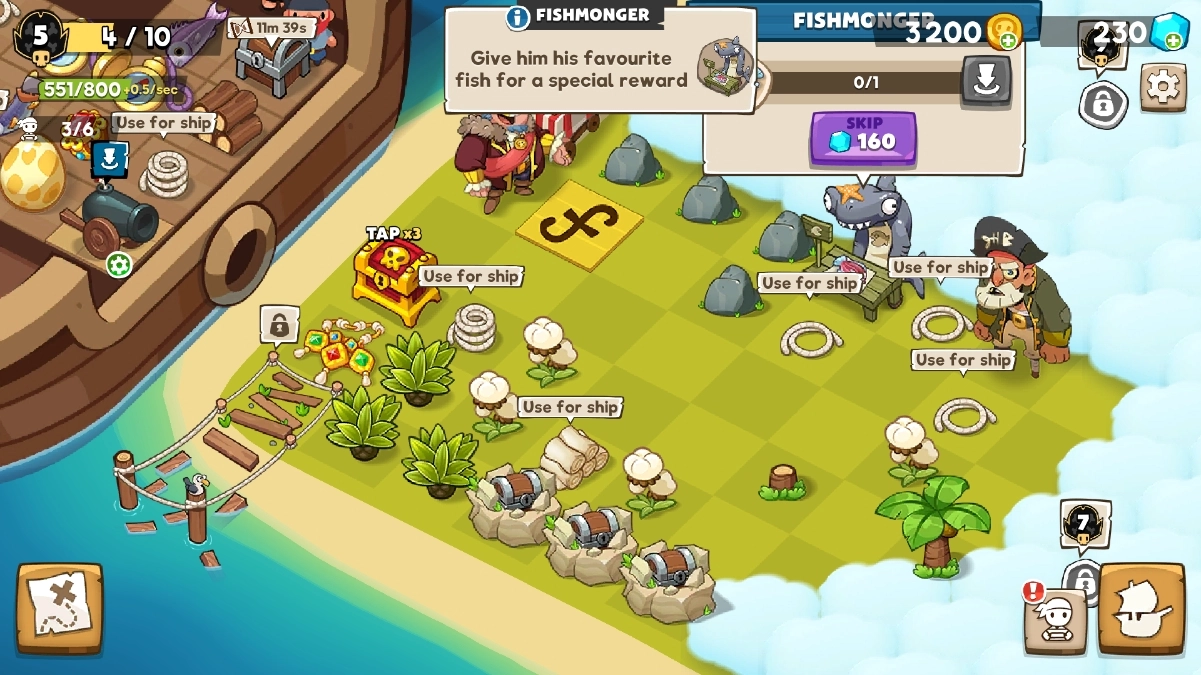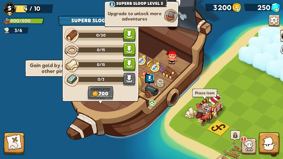玩家可以升级和自定义自己的海盗船,增强战斗力。
