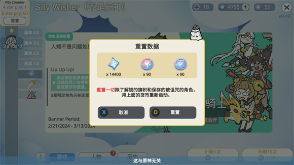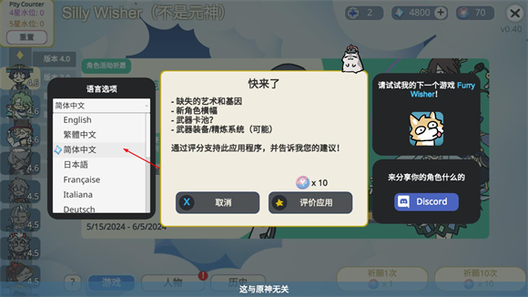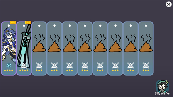 Silly Wisher是B站UP主sketchi制作的抽卡小游戏,玩家能抽取原神中的角色。游戏涵盖了从开服至今所有版本的角色与武器卡池,并且所有资源完全免费,无需花费任何费用。玩家可以自由选择想要抽取的角色,游戏概率也高度还原。还在等什么,快来试试你需要多少抽才能出金吧。
