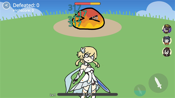4、史莱姆谷是通过攻击史莱姆给角色升级的,点击屏幕就可以攻击史莱姆,击败史莱姆就能获得经验和抽卡资源。
