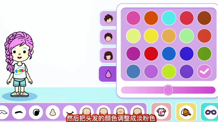 个人比较喜欢这种大辫子的发型,然后把头发颜色调整成淡粉色