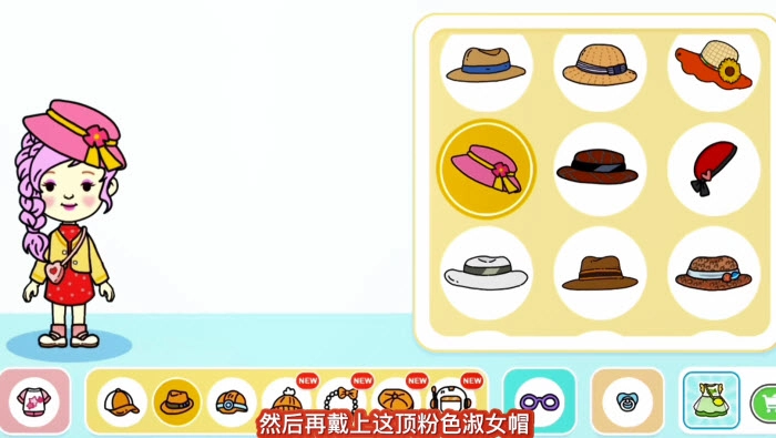 然后再戴一顶粉色淑女帽