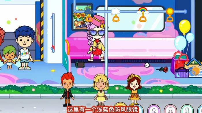 进入地铁站,坐上地铁,座位上有个蓝色的防风眼镜,戴上。最终角色形象如下图所示: