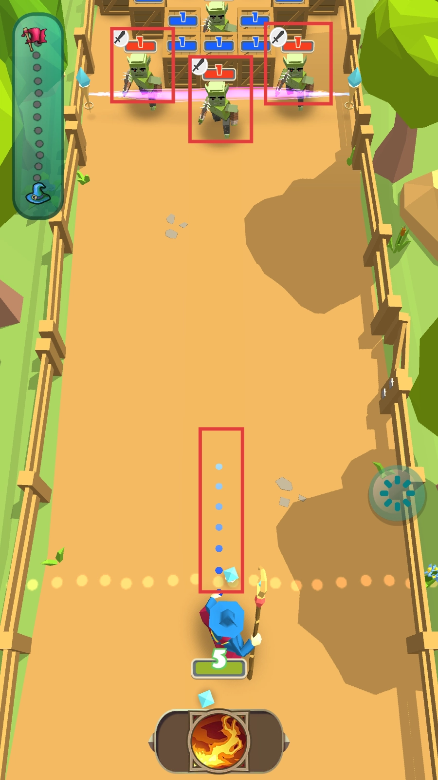 收集强化进阶:在闯关过程中收集红宝石,用其强化魔法棒,提升魔法威力,应对数量更多、难度更高的怪物,让闯关更加顺利。