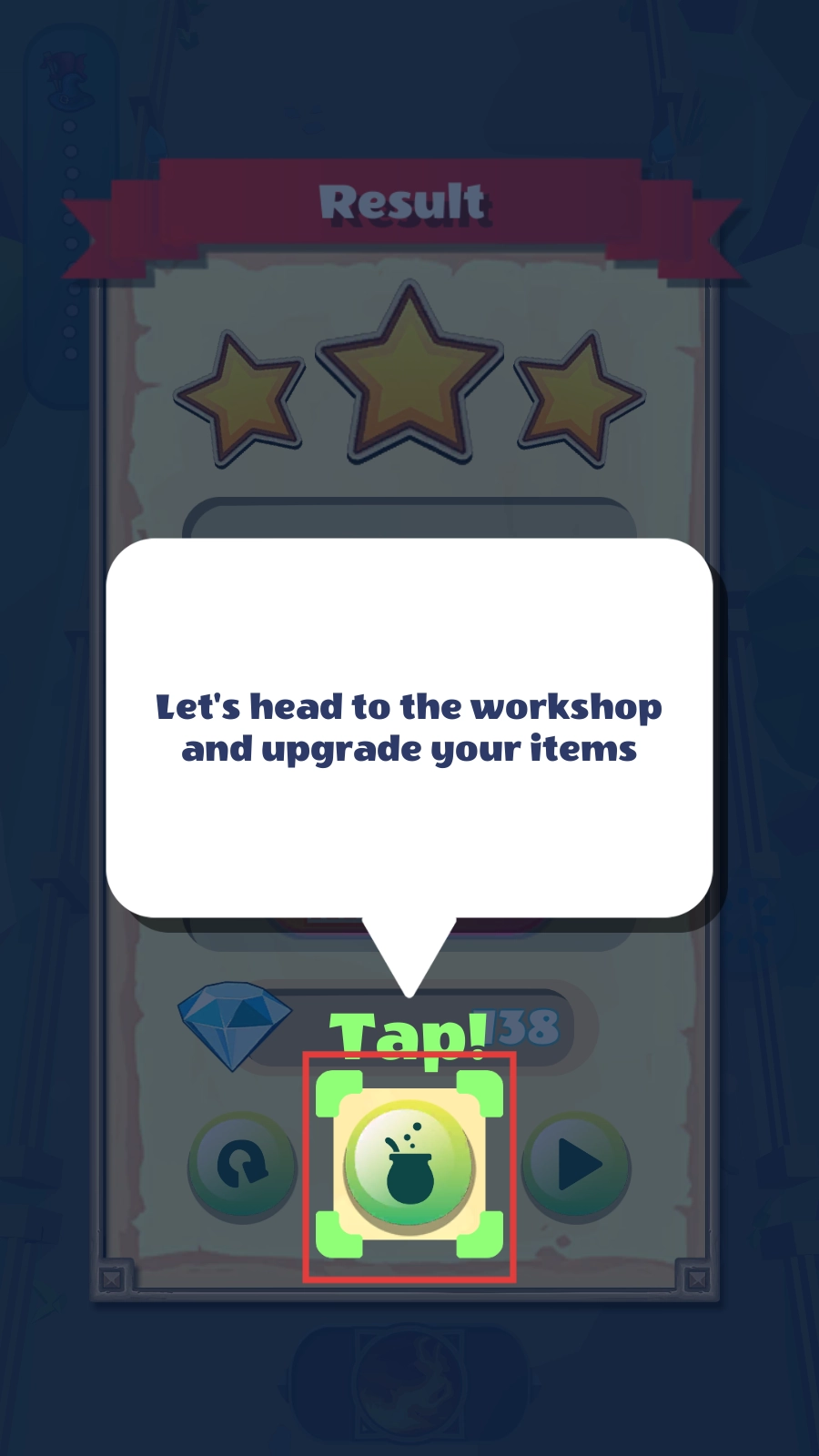 通关之后,点击坩埚形状的图标就能进入工坊,利用获得的奖励去升级物品,这样魔法会变得更强劲,然后就可以挑战新的关卡了。