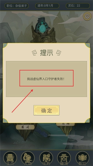 挑战【虚仙界入口】守护者失利后,需先精进修为、提升战力,可通过探寻秘境获取资源来增强自身实力。
