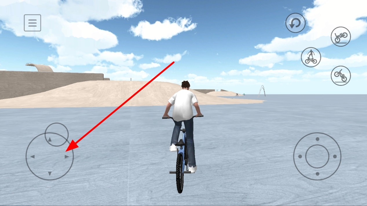进入游戏后,左下角的方向控制按钮可操控角色骑自行车移动,你需要熟悉前进、后退、转向等基础操作,这样才能在场地里自由活动。