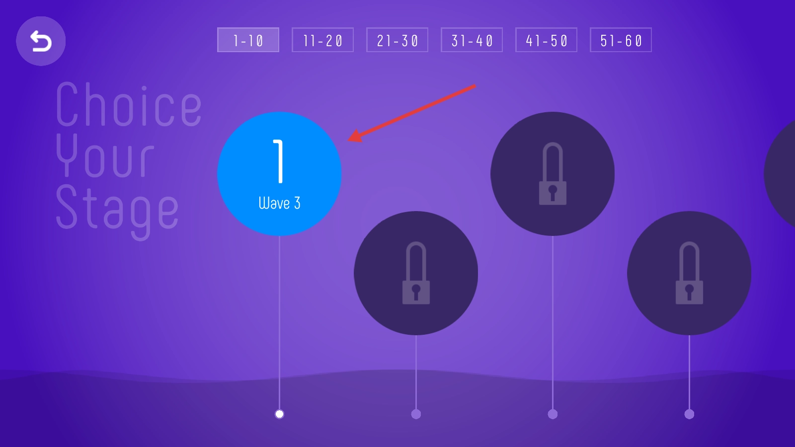 进入关卡选择界面后,我们挑选最基础的关卡,点击蓝色圆圈,就能开启战斗挑战了。