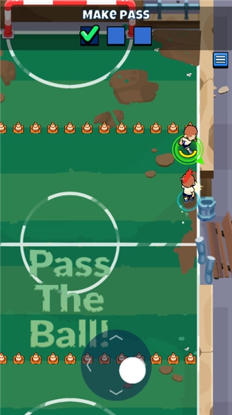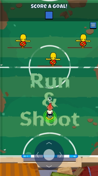 在本站进入该游戏后,刚开始的第一关特别简单,跟着新手教程操作就行,你只需要用虚拟摇杆控制人物移动,把球射进栏里就能顺利通关了。