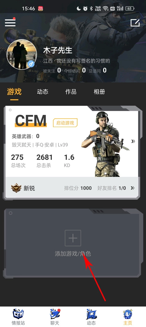 1、首先进入到个人主页,用户确定已经绑定了角色。
