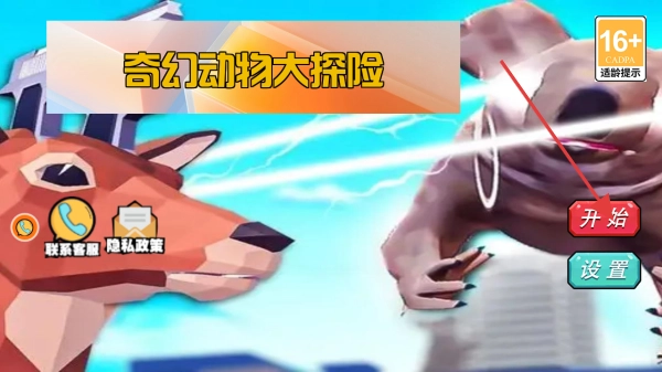 在奇幻动物大探险游戏的主界面,点击开始按钮就能进入游戏,开启奇幻动物的冒险之旅,探索这个神秘的游戏世界。