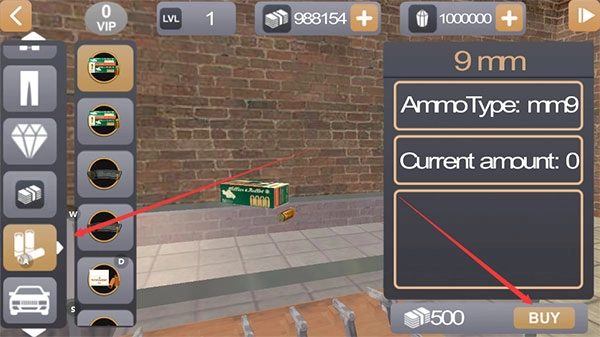 3、进入商城后,能看到已内购的货币数量,挑选自己心仪的枪支,点击BUY按钮完成购买