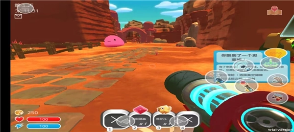 4、在地图中找到史莱姆并点击右边的收集键吸到武器中;