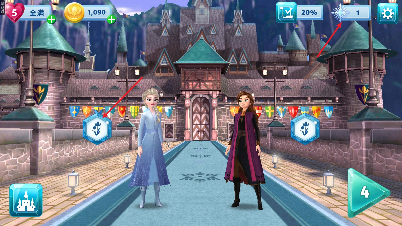 1、玩家可以跟随三消关卡和定制王国的进程来重温冰雪奇缘历险之旅,体验更多电影外的精彩故事。