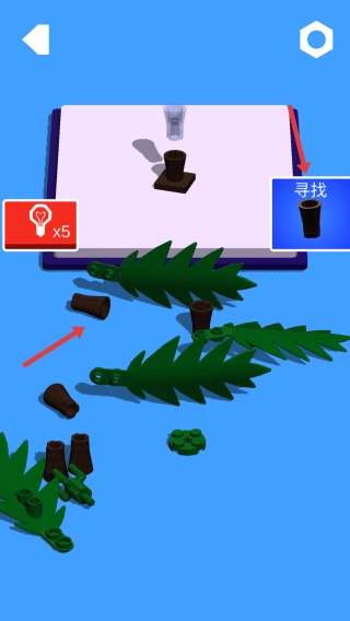 继续依照提示寻找,收集其余的棕色积木,再逐个放到平台上,一步步搭建起结构。