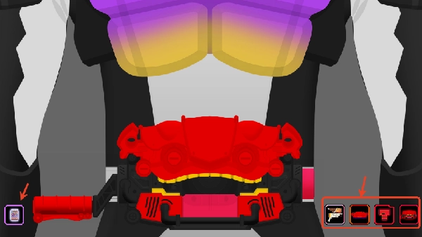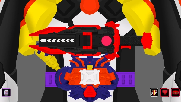 3、在游戏中摇动变身摇杆,放置卡片,即可将能赋予人类强大力量的金属铠甲穿戴在身上。