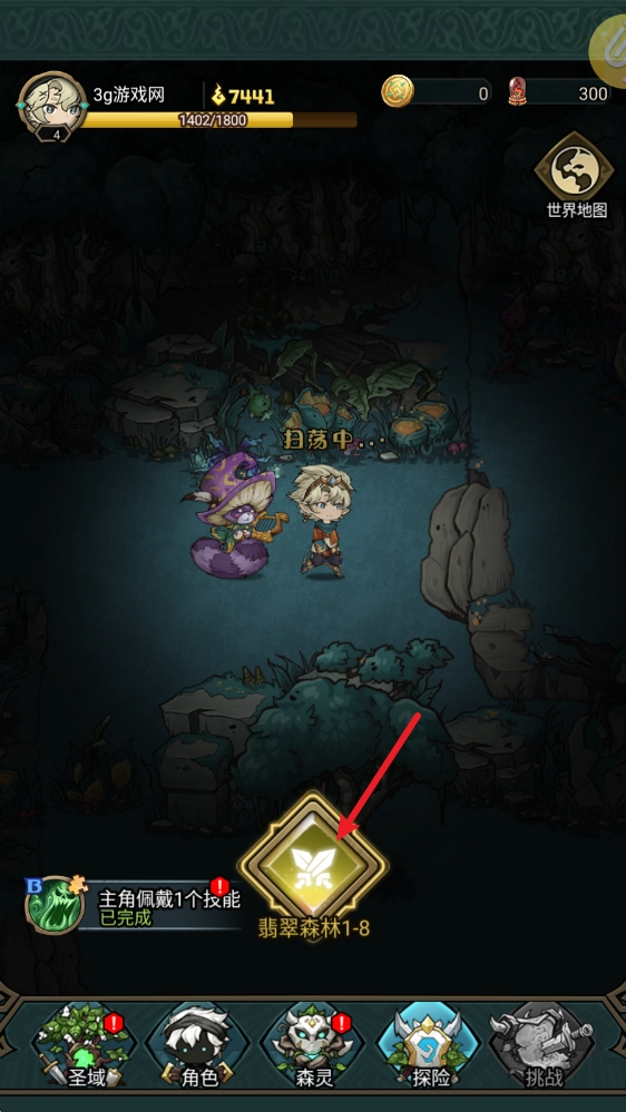 进入游戏后,点击“探险”按钮就能开启关卡挑战。