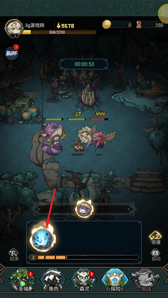 2、战斗中在中间亮了之后就能够释放森灵的技能。
