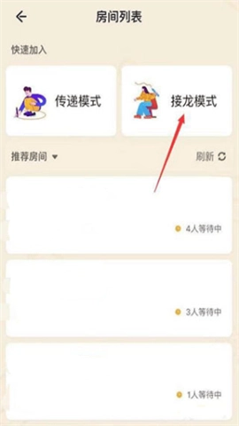 在房间列表里选“接龙模式”,就可以准备开启您的游戏之旅啦。