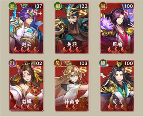 赵云+关羽+周瑜+貂蝉+孙尚香+荀彧
