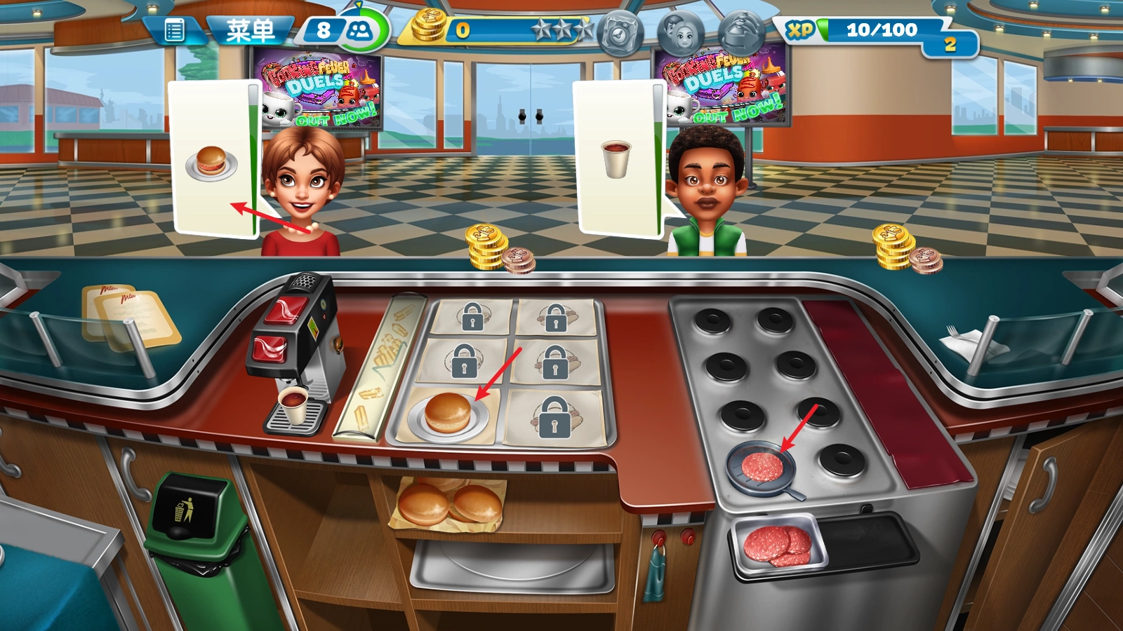 2、我们可以自由的去升级餐厅的内饰和各种厨房用具,以此来提升烹饪的效率,帮助你赚取更多金币。