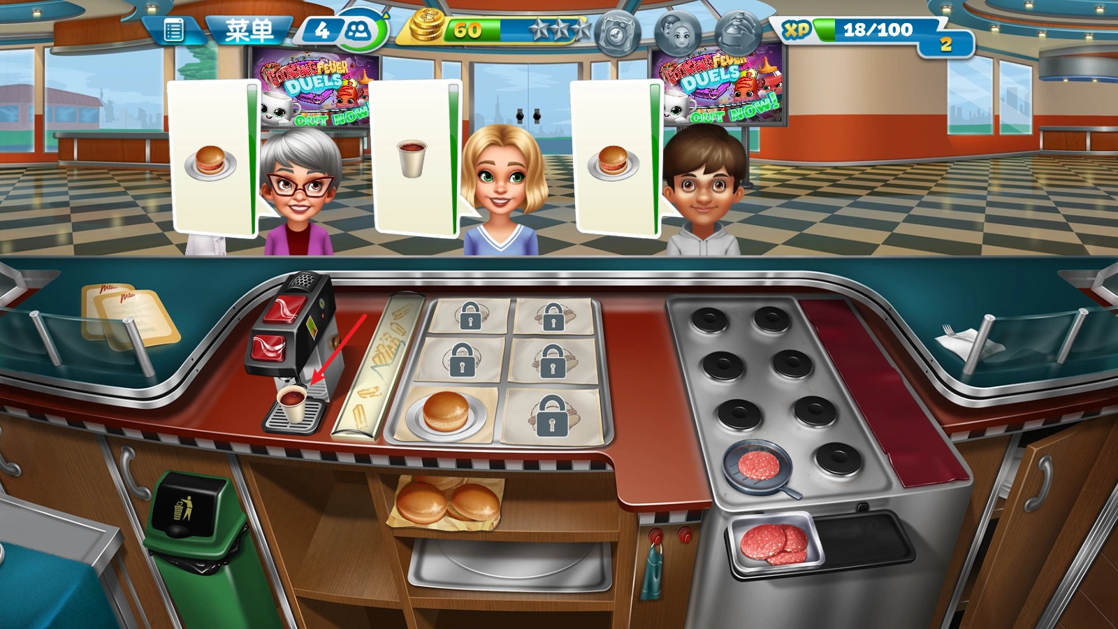 3、超多精彩有趣的关卡正等待你去挑战,每一关里你都会遇到各种各样的客人,需要制作出美味的食物来满足他们!