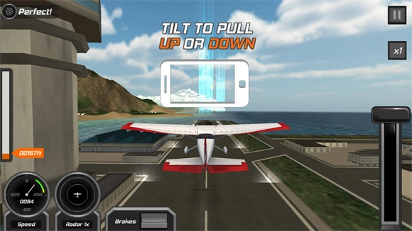 3、该游戏借助重力感应实现对飞机的操控,上下翻转操作可控制飞机攀升与降落,左右倾斜则能调节飞机的转向方向。