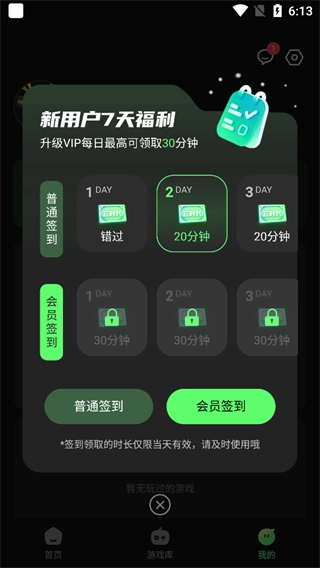 打开格来云游戏App,完成注册步骤后就能获得免费时长啦