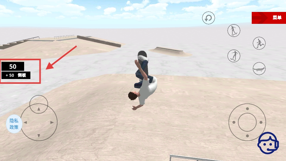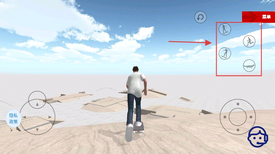 右侧的动作按钮分别对应着不同的滑板特技,点击按钮即可触发相应特技。在操作时合理选择特技,不仅能完成高难度动作,还能有效提升竞技优势。