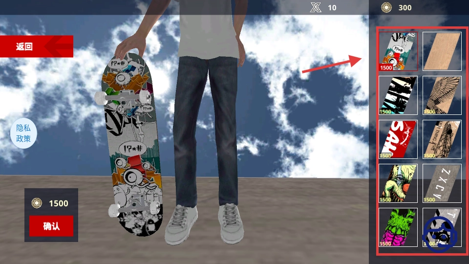 消耗1500金币解锁个性滑板图案,独特滑板助你在竞技中脱颖而出,展现专属风格。