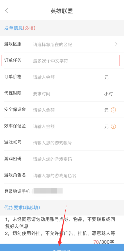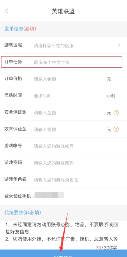 3、然后填写账号信息发布订单。