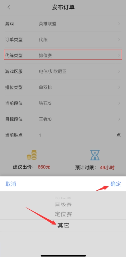 4、如需自行编辑标题,需代练类型选择其他。