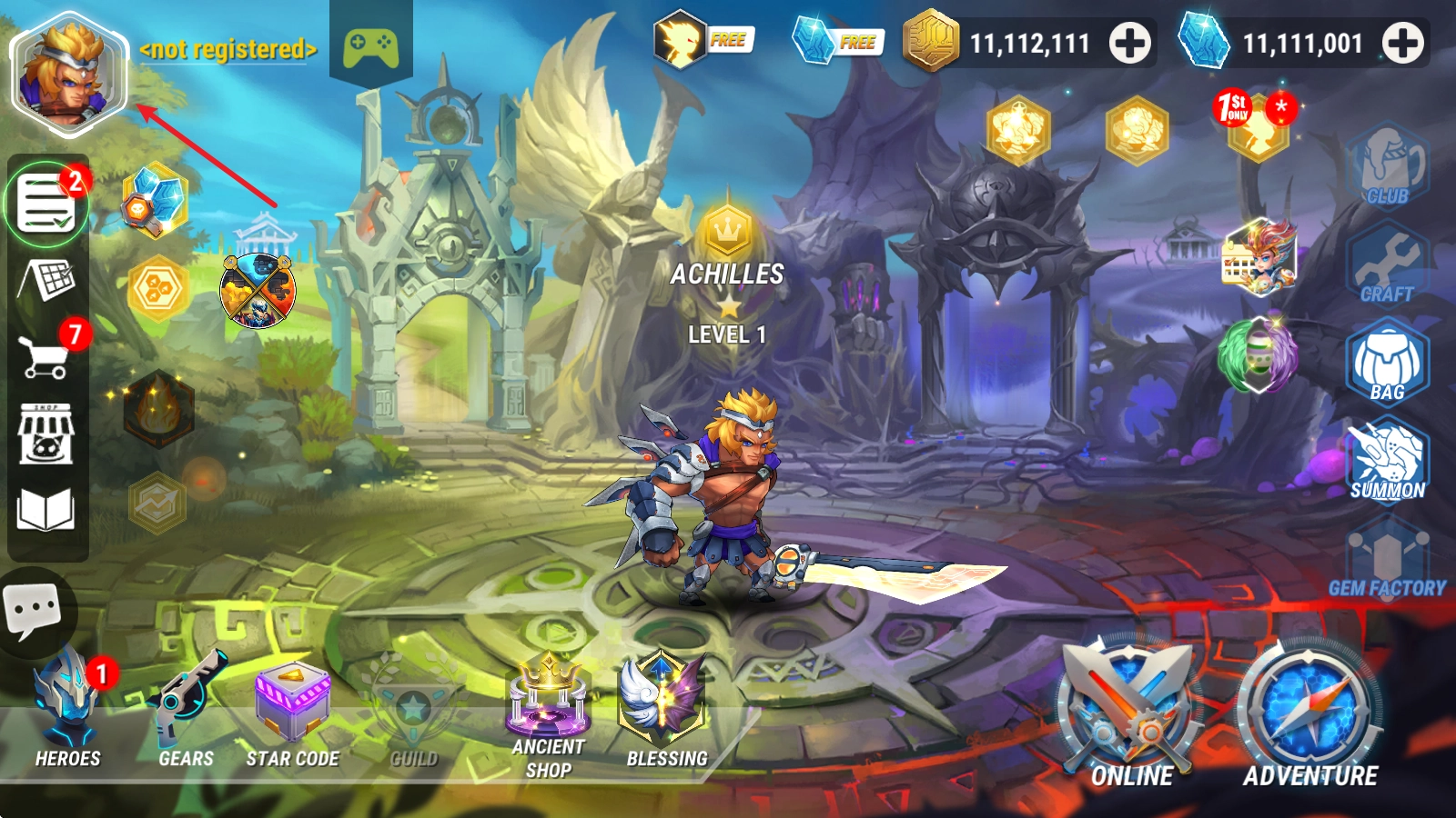 进入游戏后,点击左上角的头像图标。