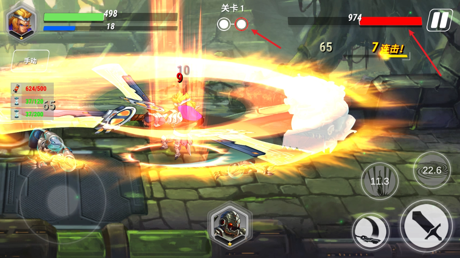 2、随后选择关卡即可开始,进入后左侧摇杆控制移动,右侧的剑则是攻击。