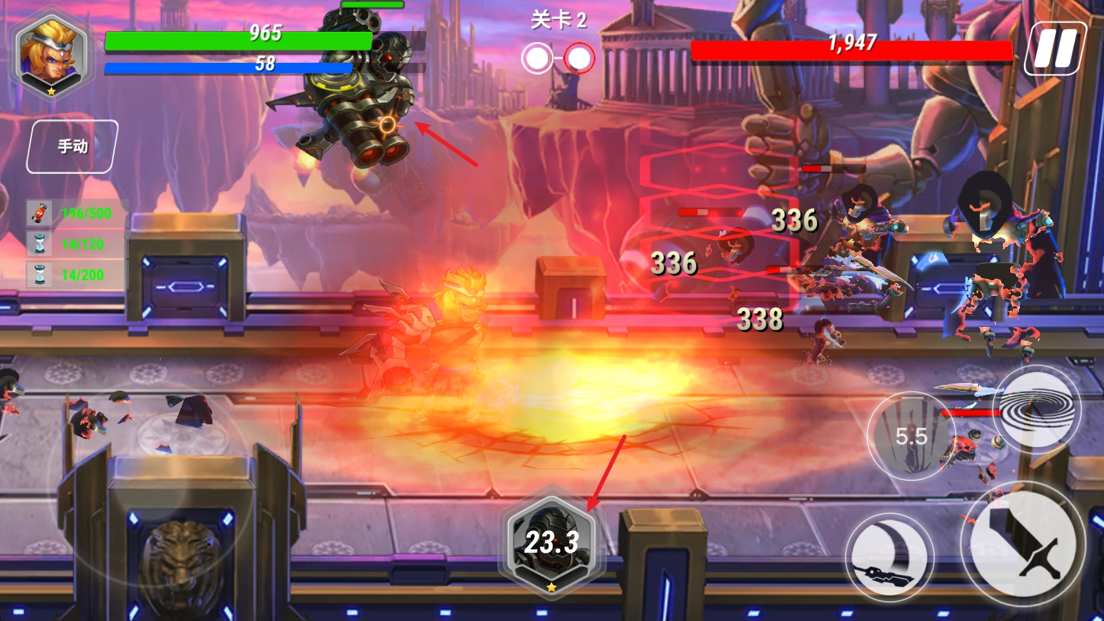 5、过程中,我们还可以点击下方的头像,召唤其他角色来辅助攻击。