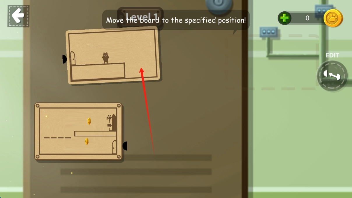 按照提示将上方的木板移动到指定位置,搭建好关卡的初始通路,这样就能为猫咪的行动创造出基础环境。