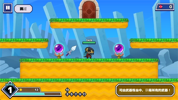 在角色左右两侧的宝珠中,可以获得武器。