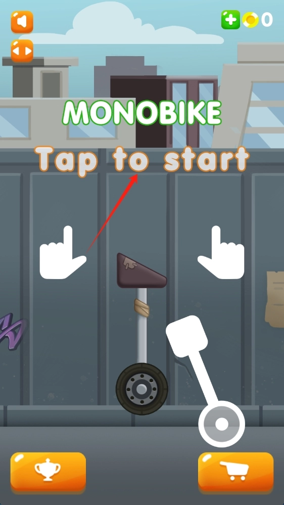 在MONOBIKE界面中,点击Tap-to-start按钮,即可开启独轮车平衡挑战,之后点击屏幕就能开始游戏。