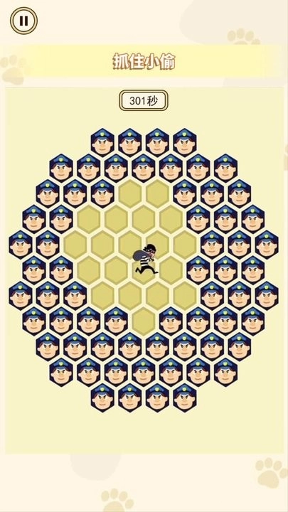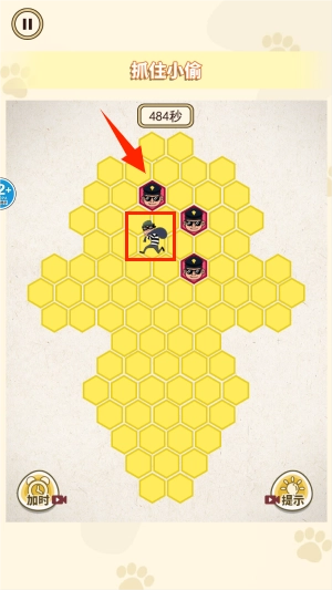 方格内的是小偷,你得点击六边形格子来放置警察,把小偷包围起来。