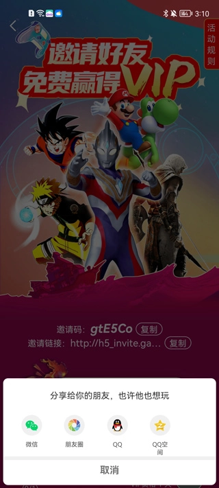 4、如图所示,既能够复制链接进行邀请,也可以直接分享到微信、QQ等平台来邀请他人。