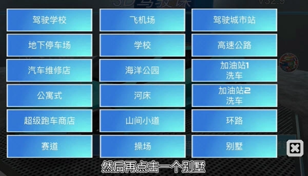 1、启动游戏,点击免费驾驶模式,接着选定“别墅”场景地图。