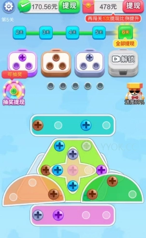 1、有很多螺丝需要你去点击消除,休闲解压的螺丝玩法可以给你非常多的奖励。