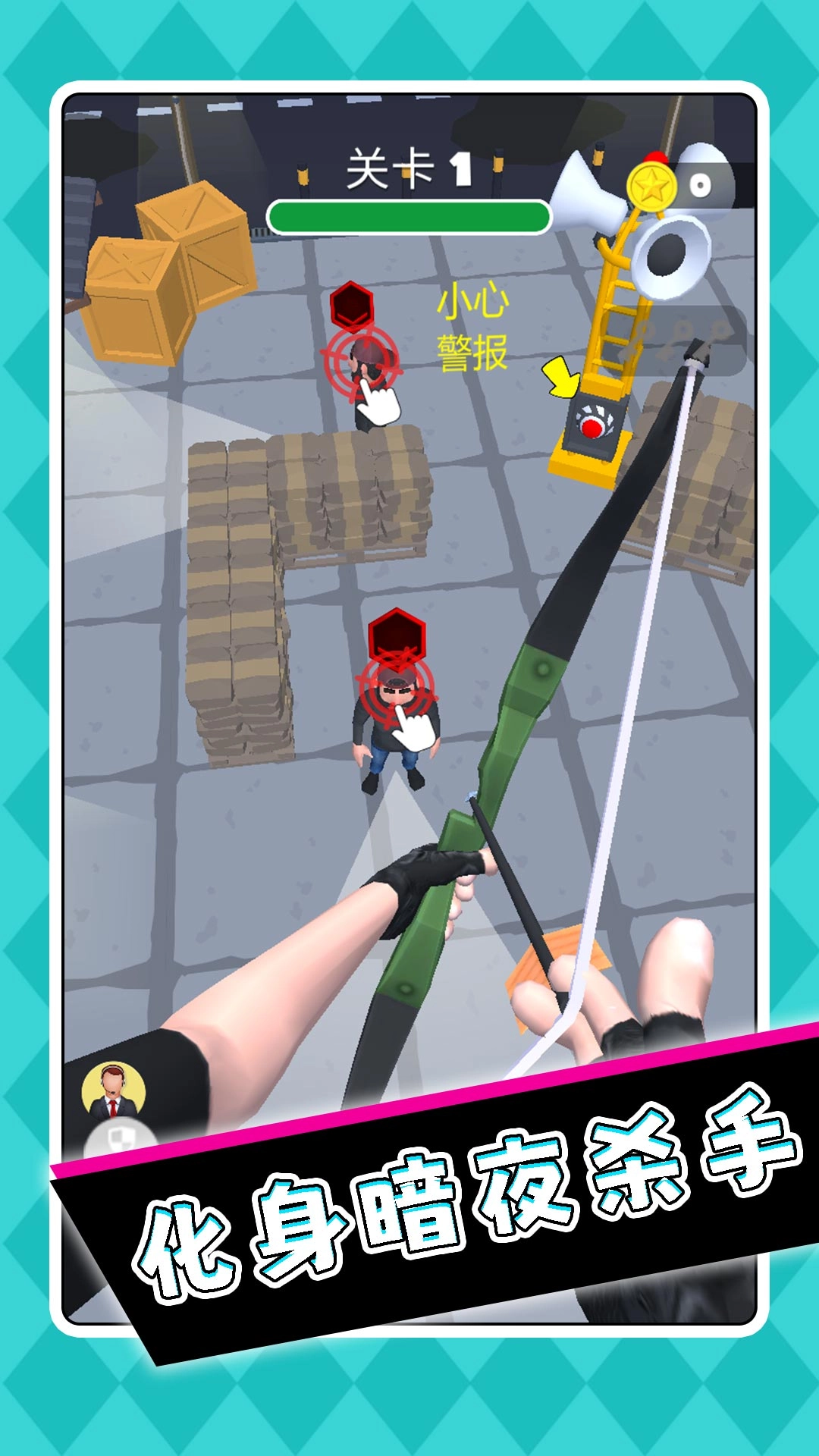 支持解锁不同类型的弓箭与箭簇,装备具备差异化属性,可通过任务奖励升级强化,提升射击效率与隐蔽能力。