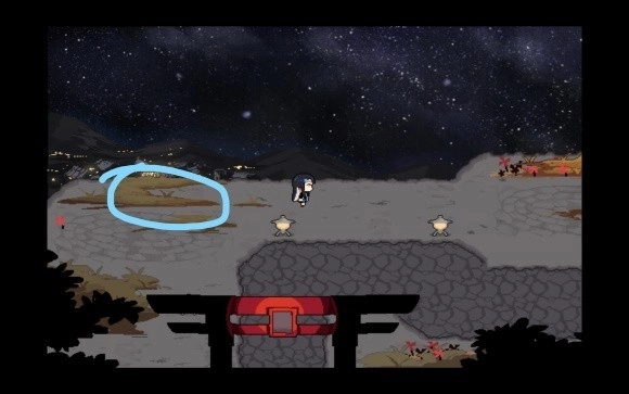 然后进入下一个场景之前再提及一下上个场景的互动内容,一个指路标和两条路(一条去山上一条去森林),不过序章之前我们的主角还是救友心切不会乱跑的。第二个场景则只包含两个地缚鬼以及一个后面来才会刷新的融合怪。