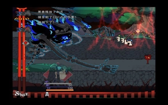 就是第二张图展示的,按常理说这里是一个100%的剧情杀,boss大概会放三四次嘶吼(估计是buff之类的,周围的空气变得危险了.jpg)然后就是一通挠,大概三千多伤害吧,放在后期也挺不住,(更何况当时我测试的时候开了防御)在那之前主角的攻击是无法造成伤害的,而且boss没有血条,多半是不能强杀的