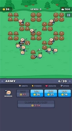 在闲置勇士这款游戏里,玩家可以自由搭配各式各样的兵种,不同类型的士兵能够相互组合,从而组建出全新的军队,打造出最强大的士兵阵容,以此战胜更多敌人,顺利闯过战斗关卡。