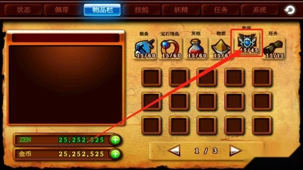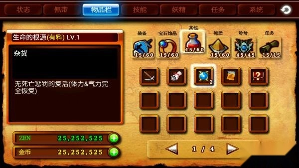 MISC,也就是药品类,品类其实挺杂的,像回复药(POTION)、用于强化的材料、精灵产出的符文石(RUNE)以及技能石(SKILL STONE),都归在这个类别里。