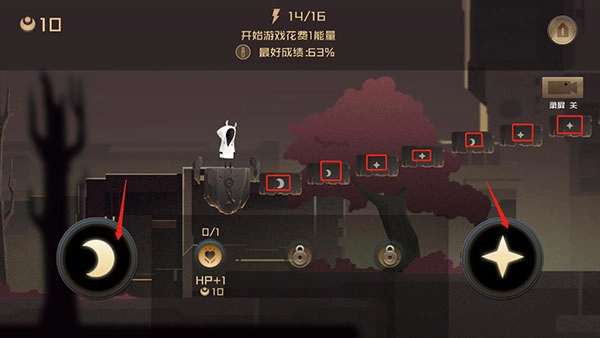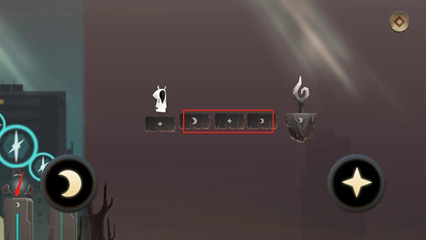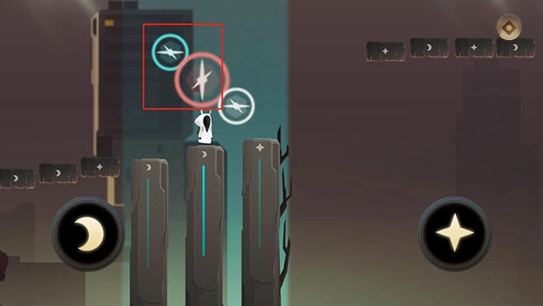 4、点击屏幕上的星星与月亮图标,使光线追踪者向前跳跃。