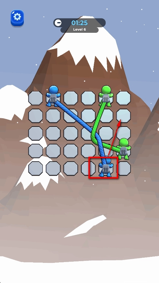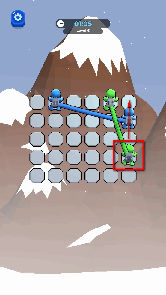 观察发现,当红色小人移动到左侧时,红色绳索便不再缠绕,此时即可进行消除操作。