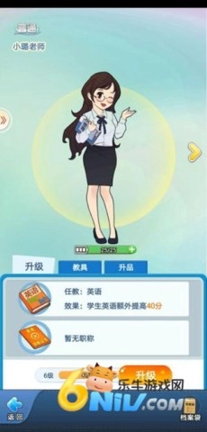 点击班级按钮选择对应老师,进入升级页面。老师升级主要依靠经验的积累,当经验满足条件后可以点击按钮进行升级,升级后老师对全部学生的学科分数加成会进一步提高,助力各位校长培养出更优秀的学霸。